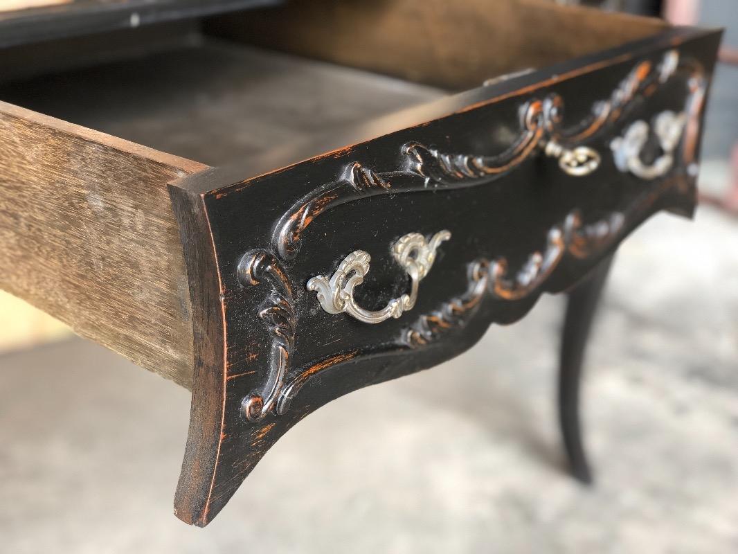 Bureau plat en bois noirci style Régence en Bois peint, France 20ème siècle