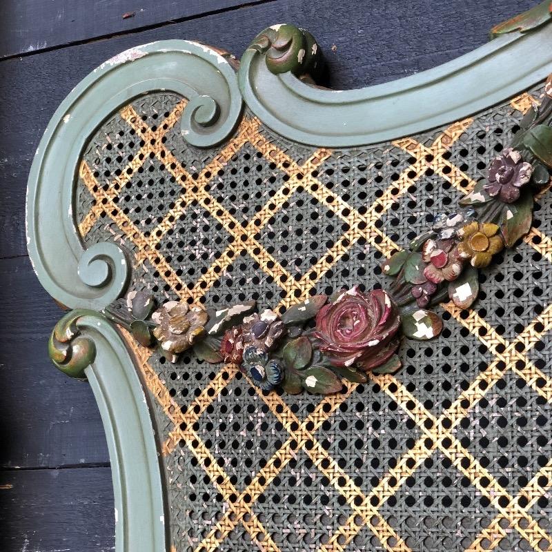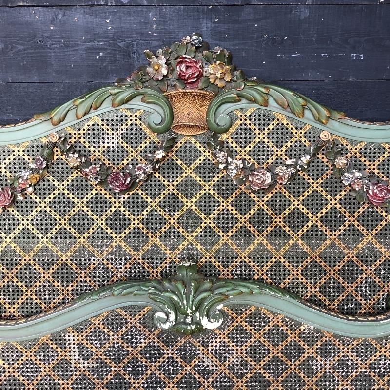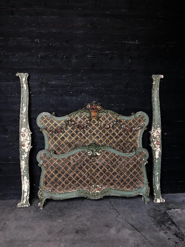 Ancien lit Transition Louis XV/XVI patiné et canné
