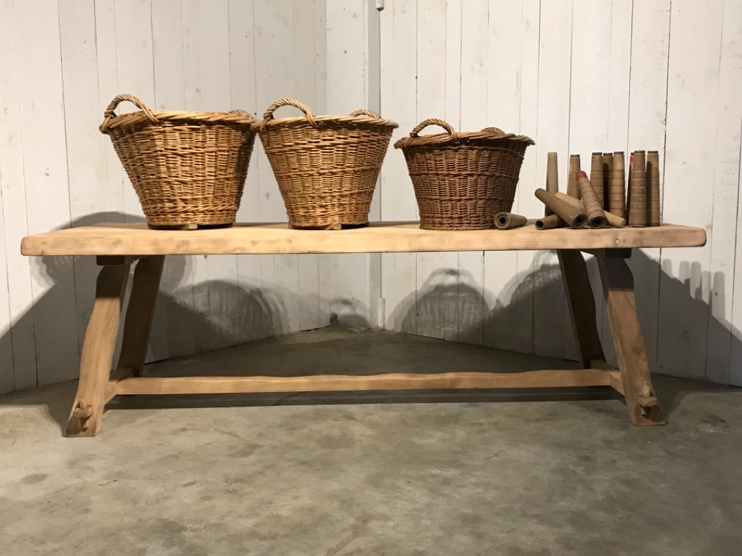 Table de ferme scandinave style Primitive en Orme, France 1950