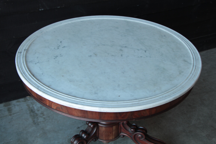 Guéridon Louis-philippe avec marbre blanc de carrare