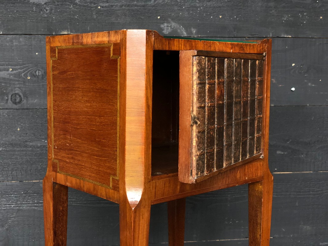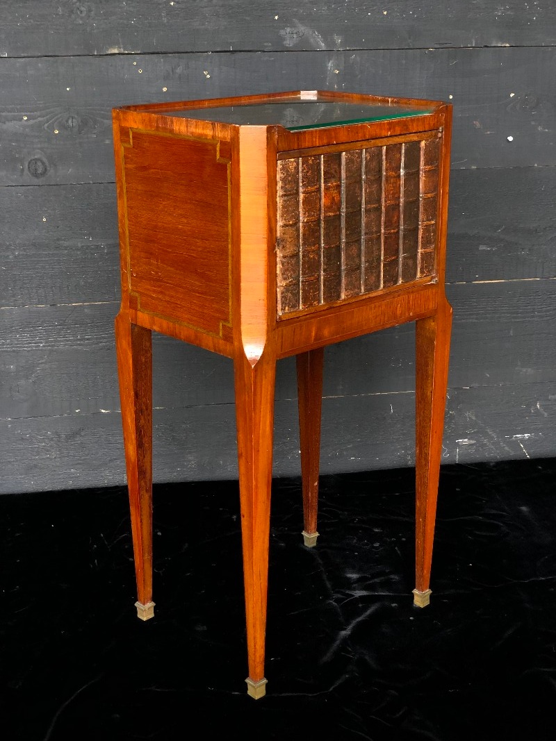 style French nightstand with leather book door, in condition for sale in FURNITURE, SMALL FURNITURES | European Antiques Warehouse