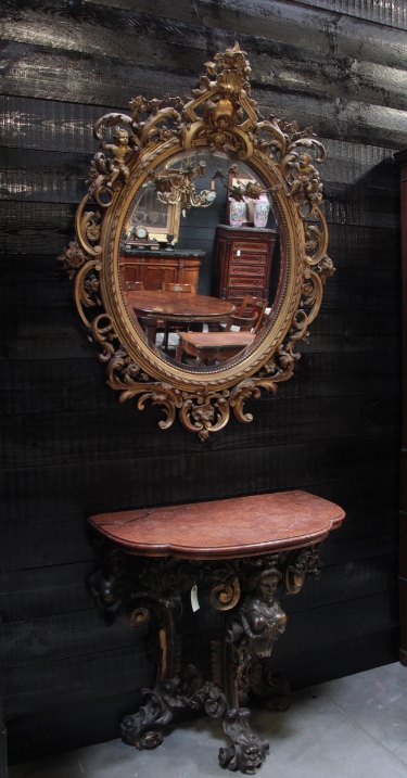 Wood Carved Italian Consol & 19 th Century Gilt Mirror