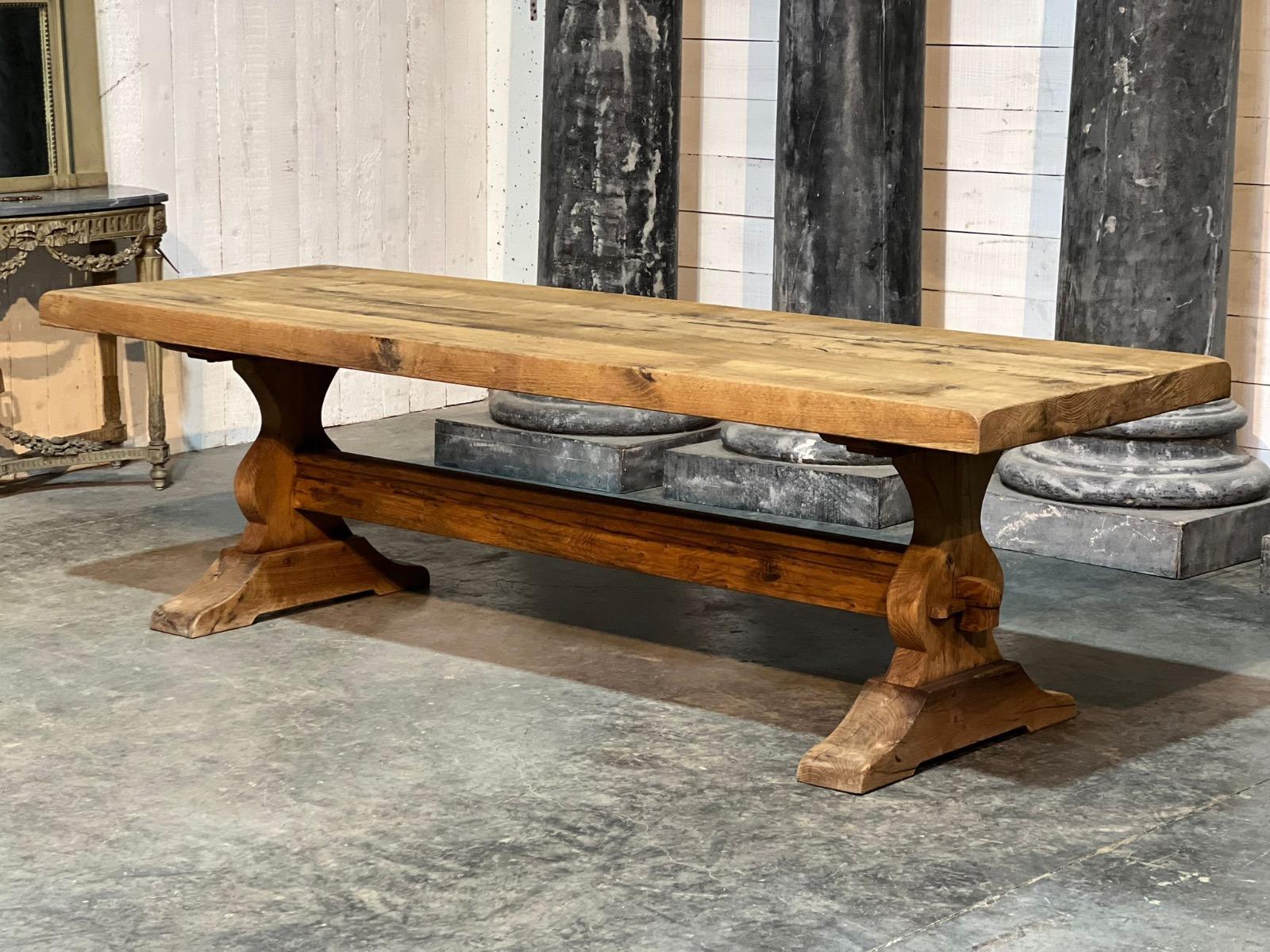 8 feet long trestle table Bleached oak monastery table Oak community table Dimensions 251 cm x 87 cm x 75 cm