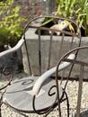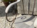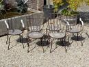 Vintage garden set in wrought iron and teak Balloon back garden chairs #balloonchairs #gardenchairs #wroughtironchairs