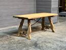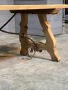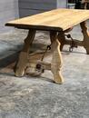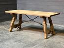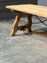Bleached oak spanish table with wrought iron stretcher circa 1940 Dimensions 181 cm x 79,5 cm x 77,5 cm Overhang 24,5 cm Thickness 4,5 cm