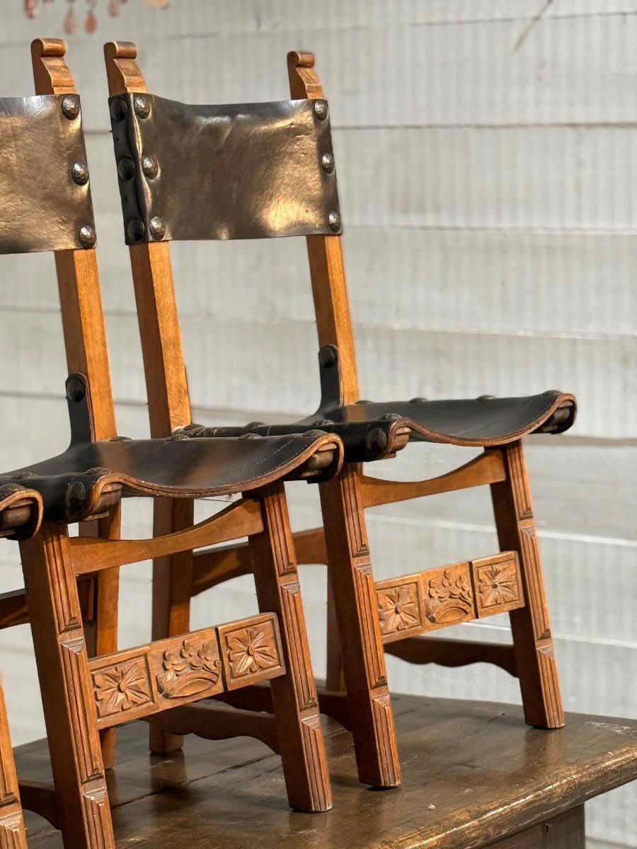 Six spanish leather chairs