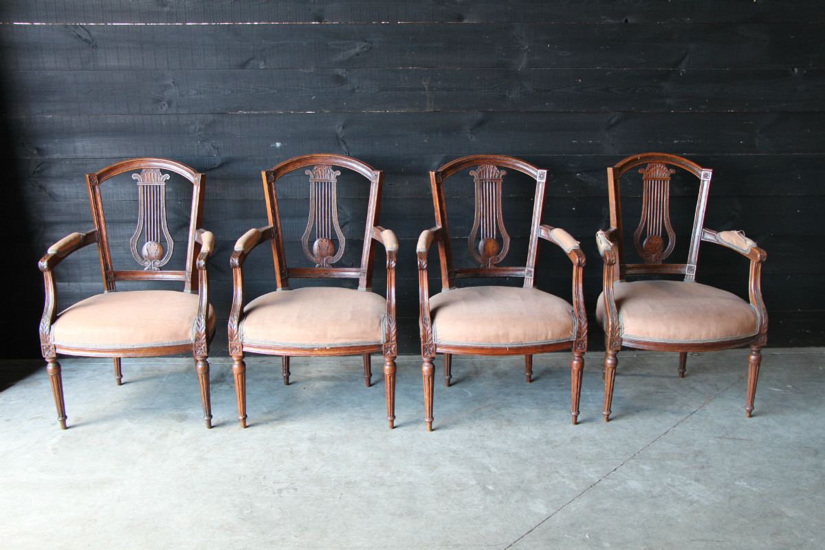 style Middle 19 Th Century Elm Wood Armchairs With Lyre Back