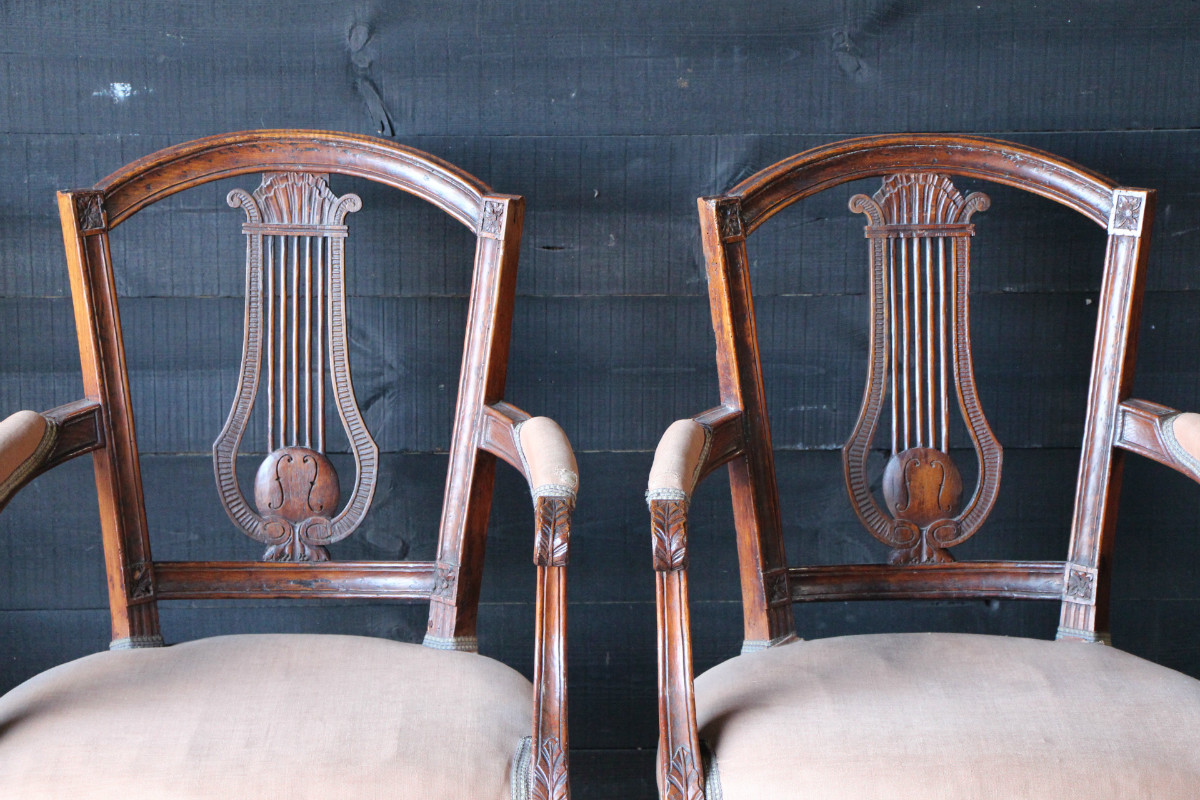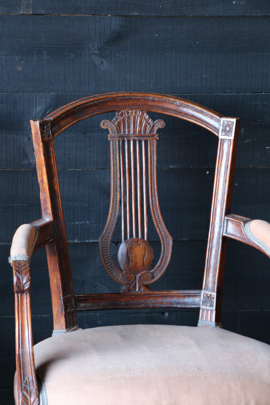 Middle 19 Th Century Elm Wood Armchairs With Lyre Back