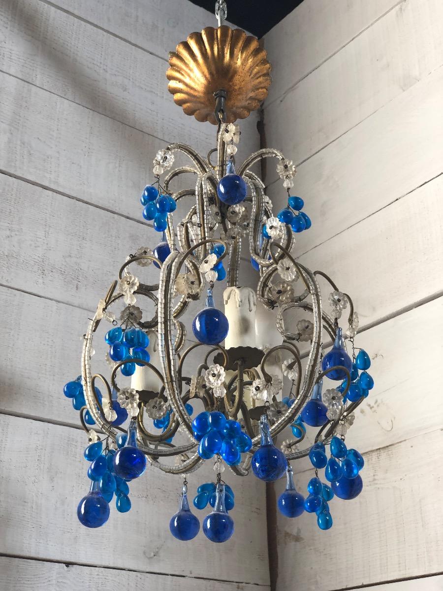 Blue glasses and white pearls chandelier