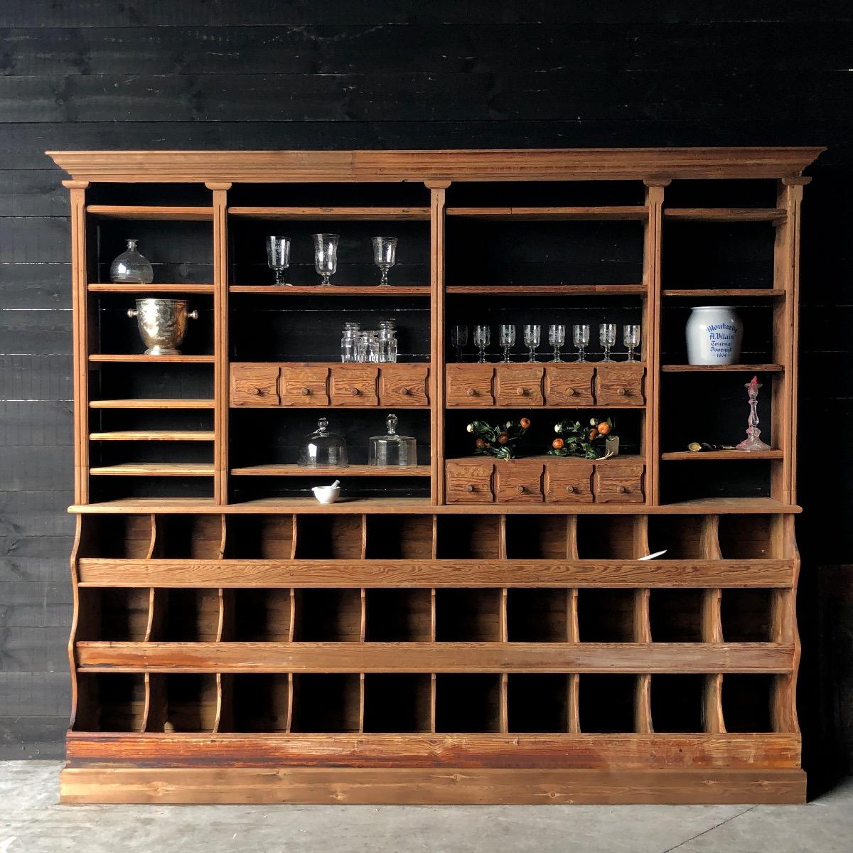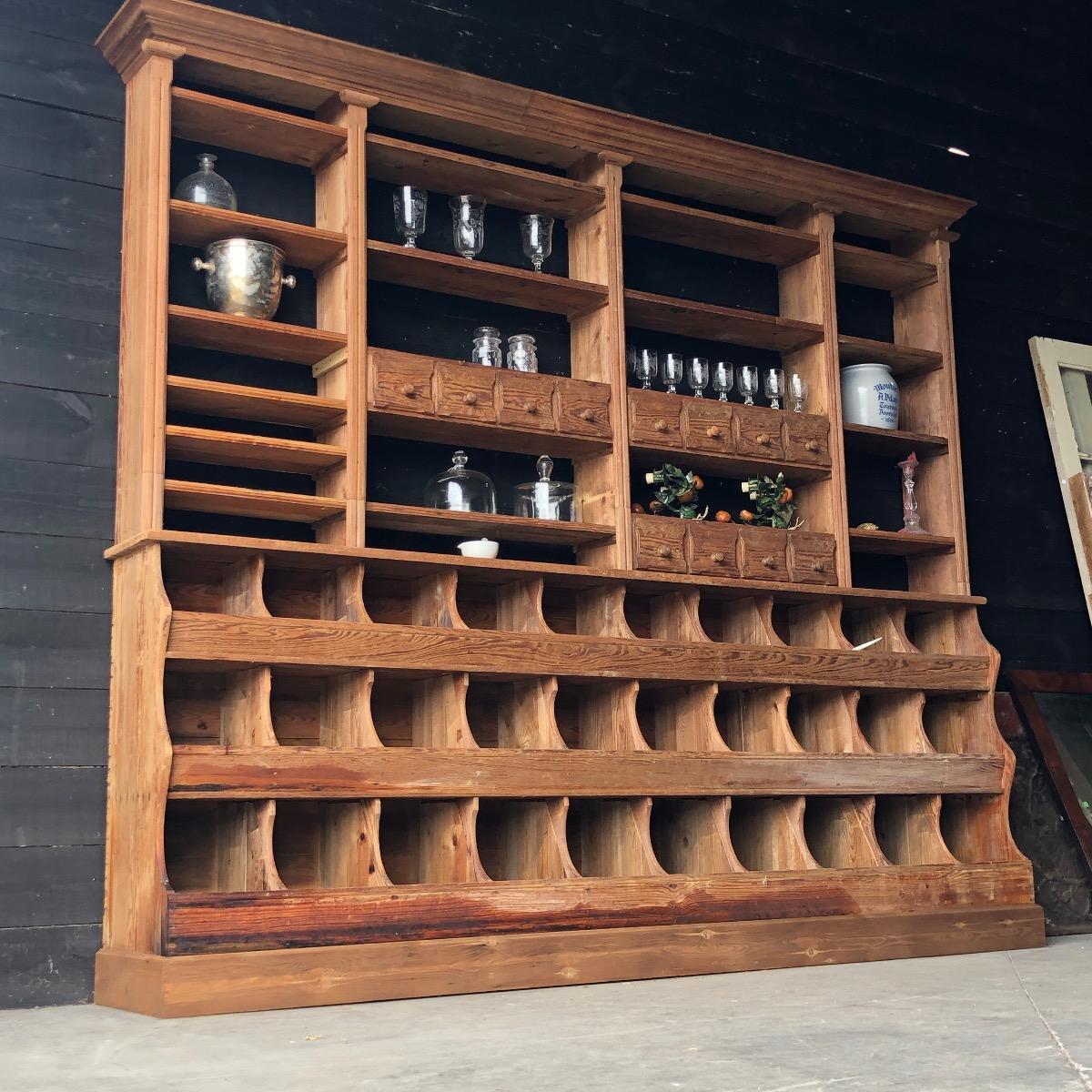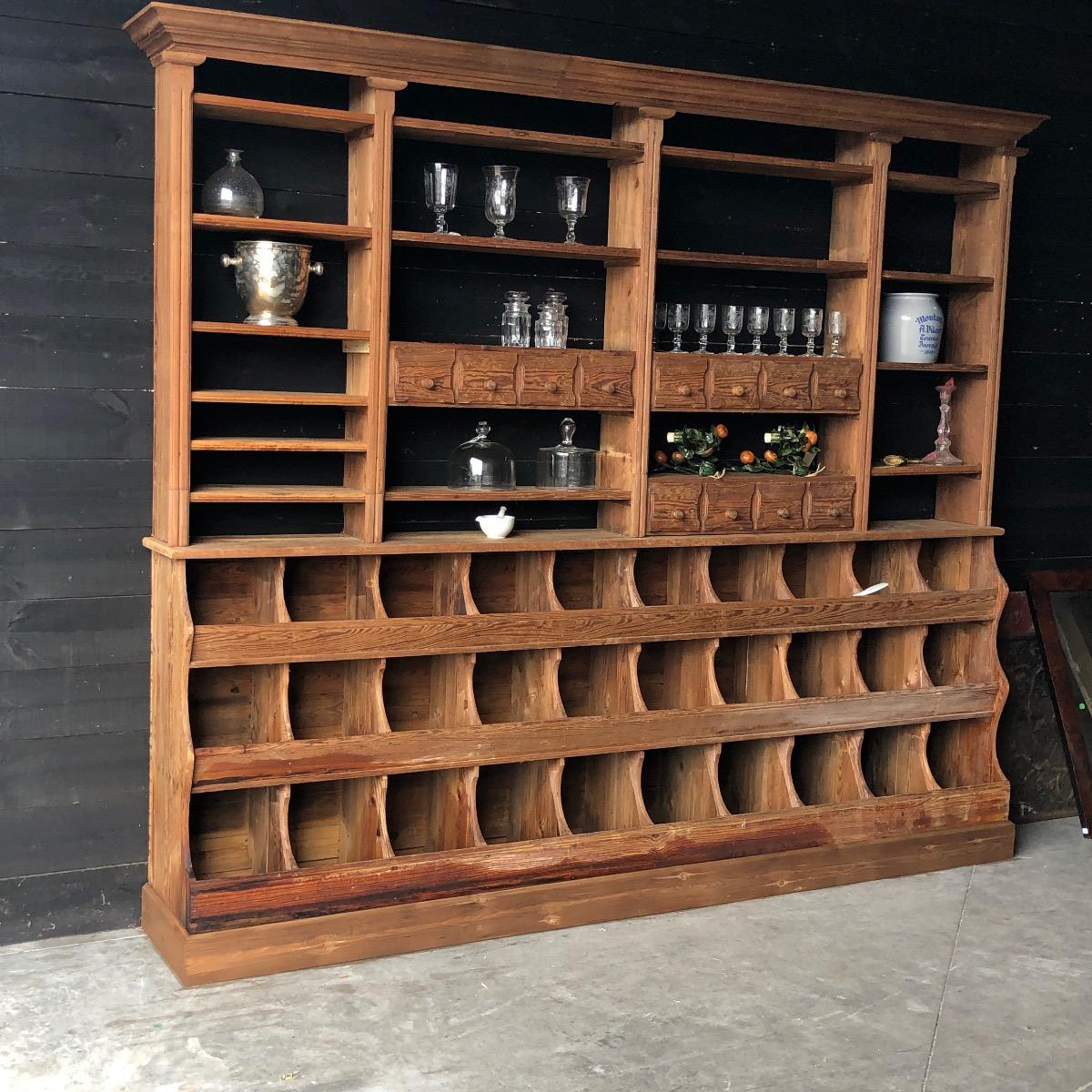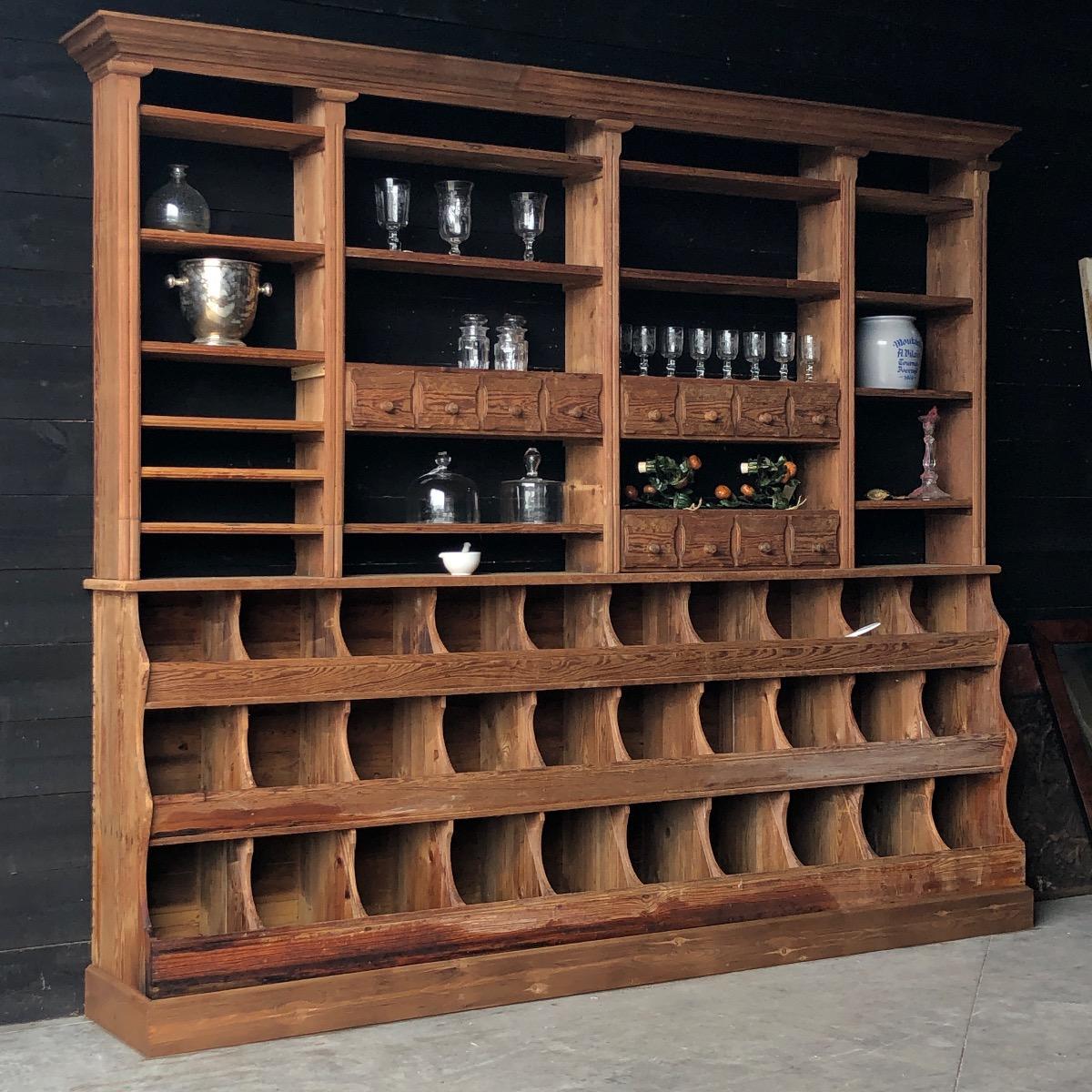 Antique pitch-pine shop cabinet Dimensions 267 cm x 235 cm x 44 cm
