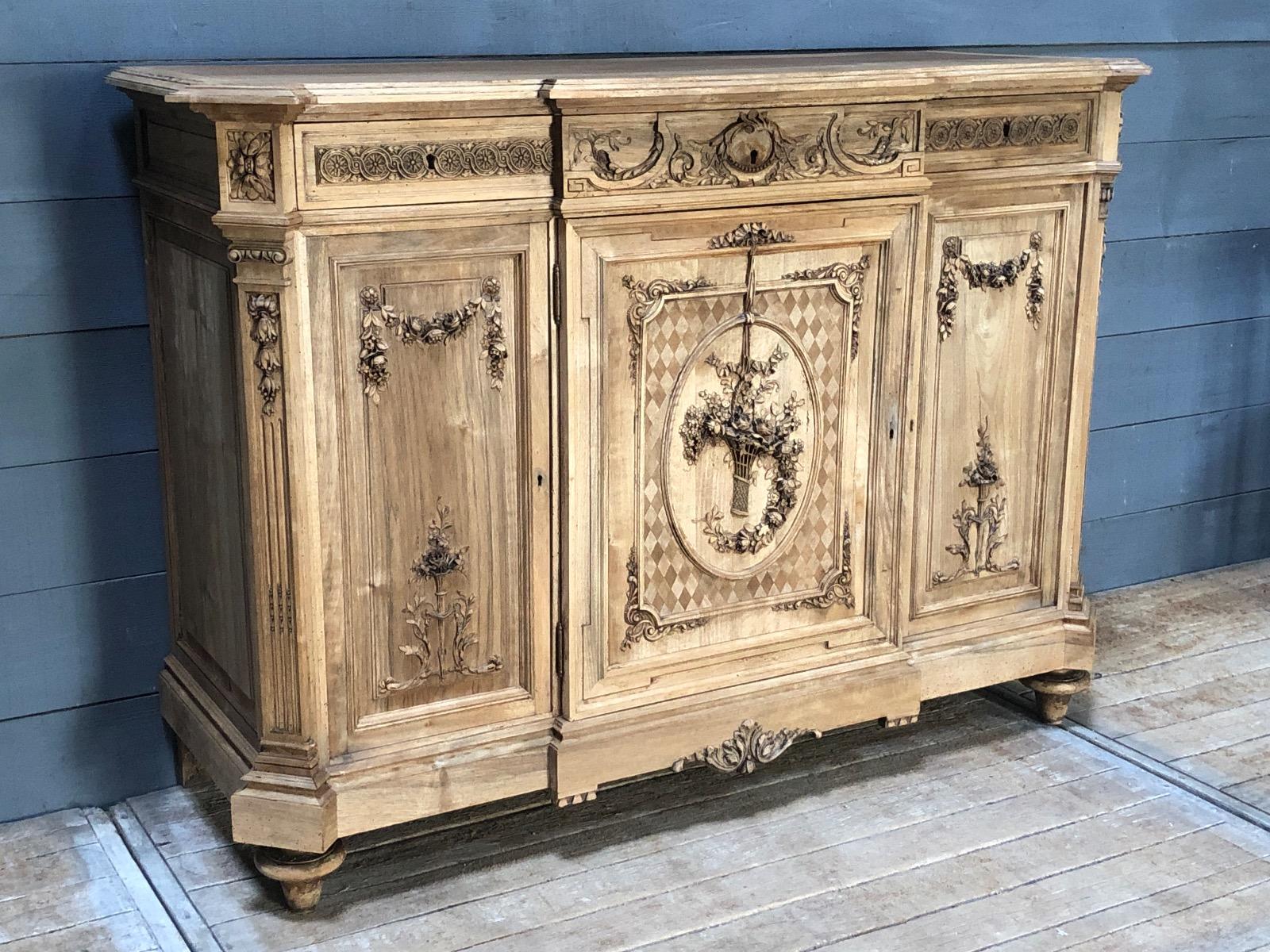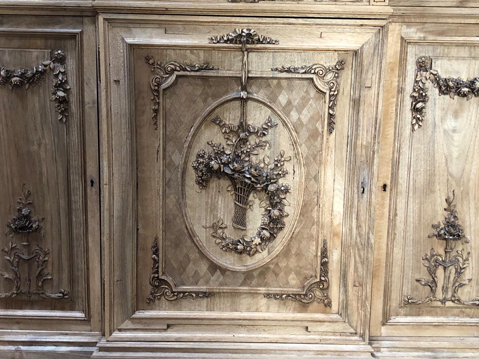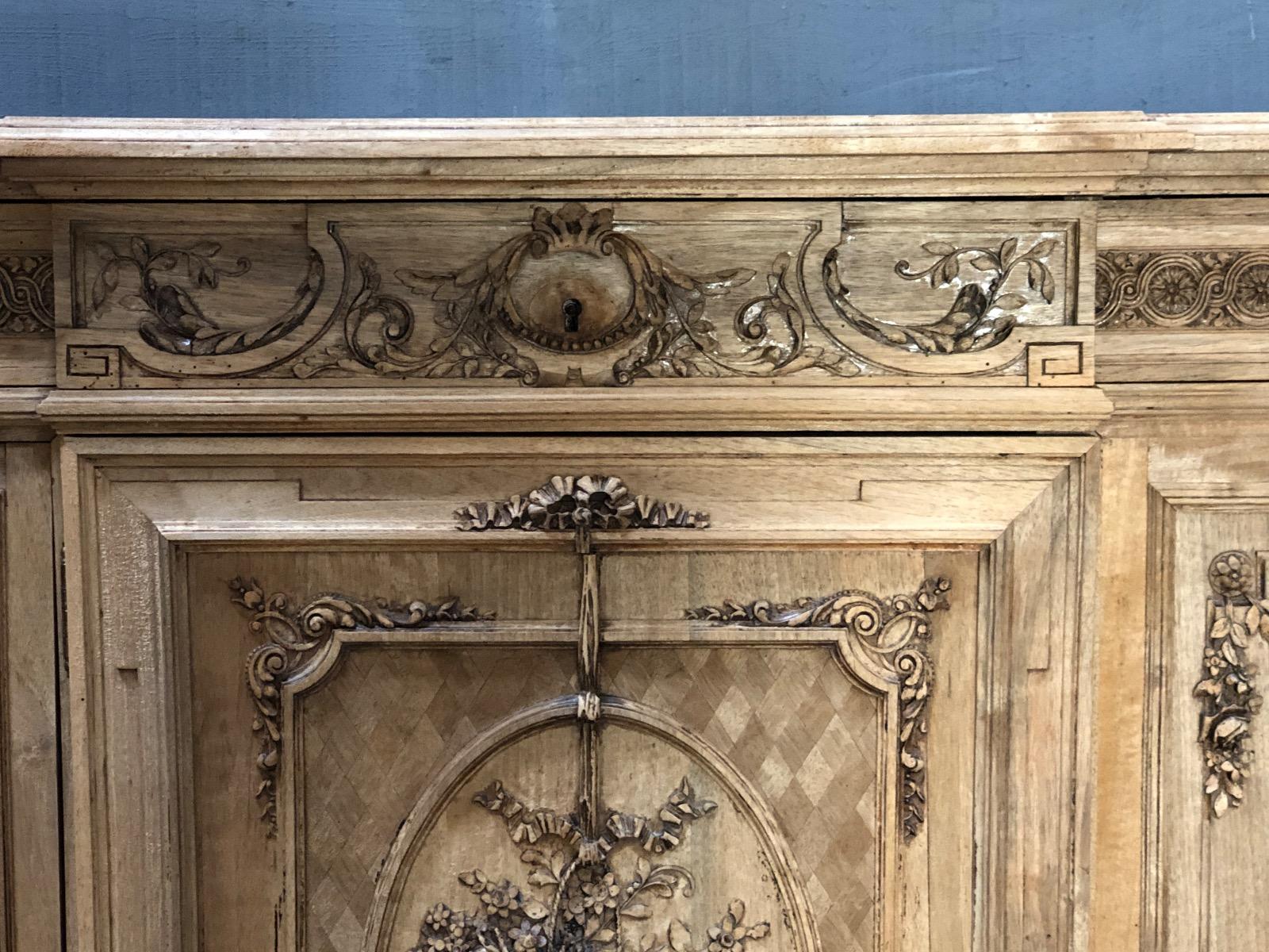 French Louis XVI style Bleached walnut fine carved cabinet