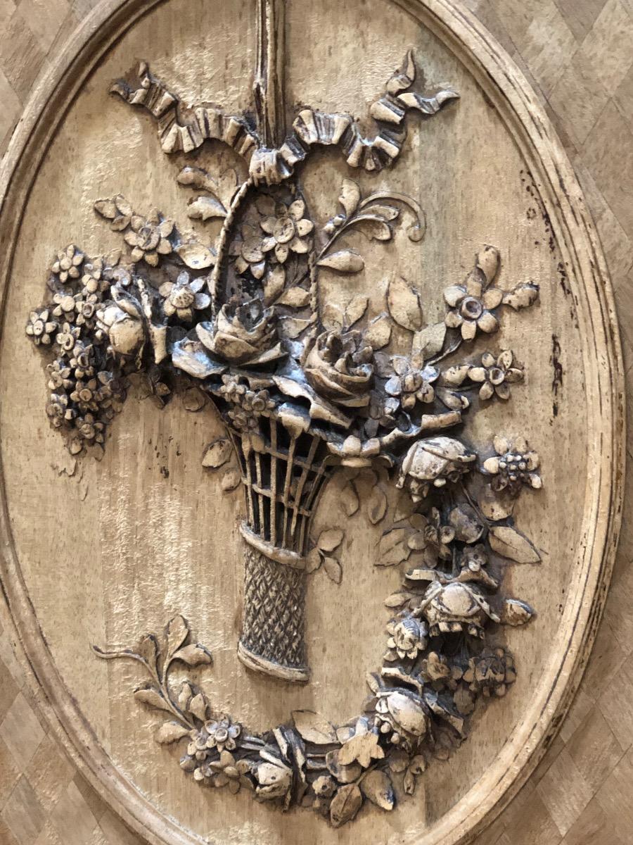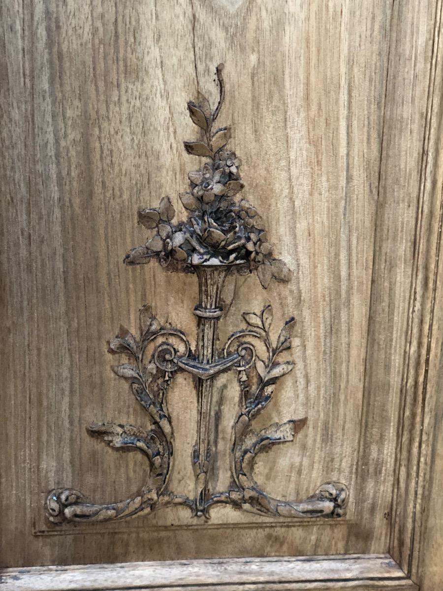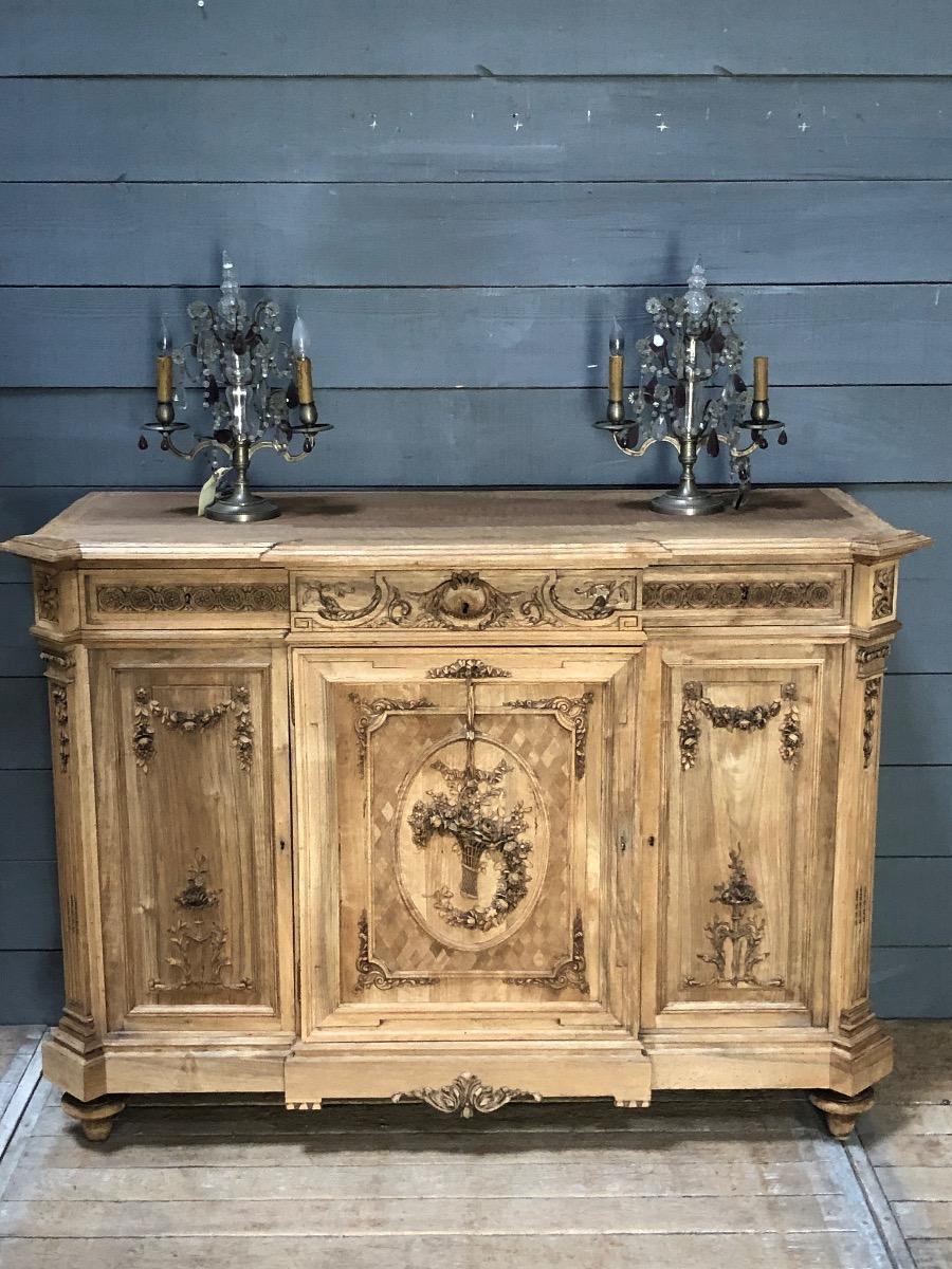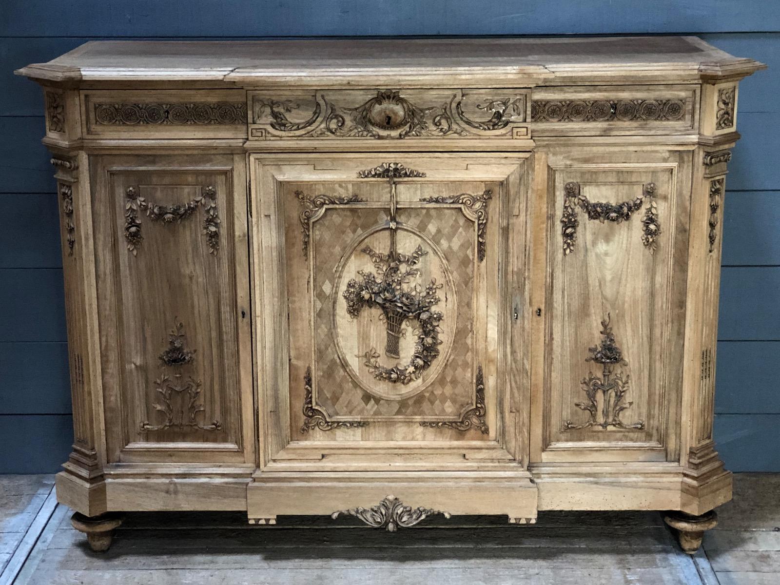 French Louis XVI style Bleached walnut fine carved cabinet