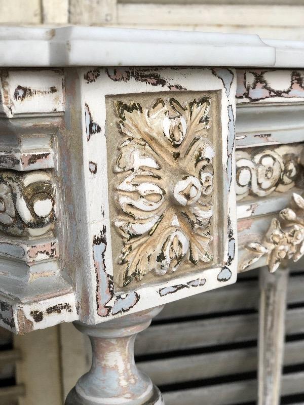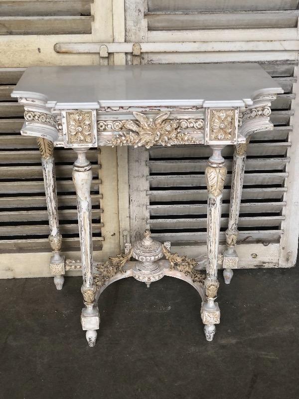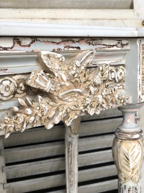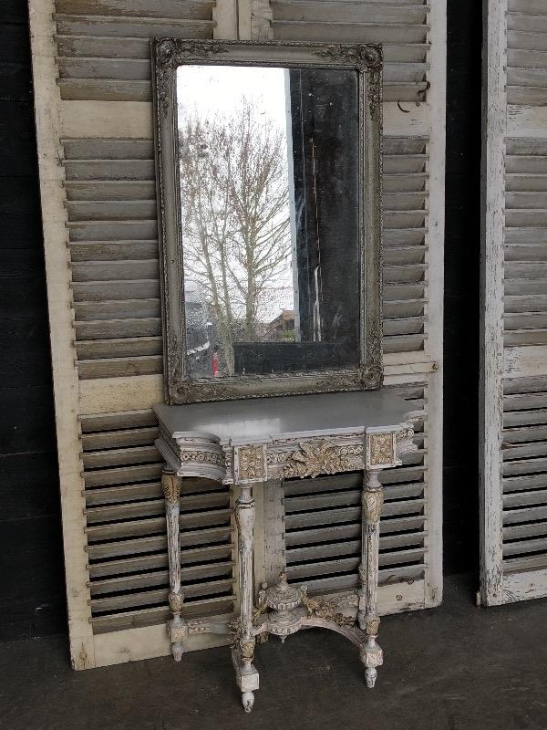 Louis XVI Style Painted Consol circa 1900 and middle 19th Century French mercury mirror