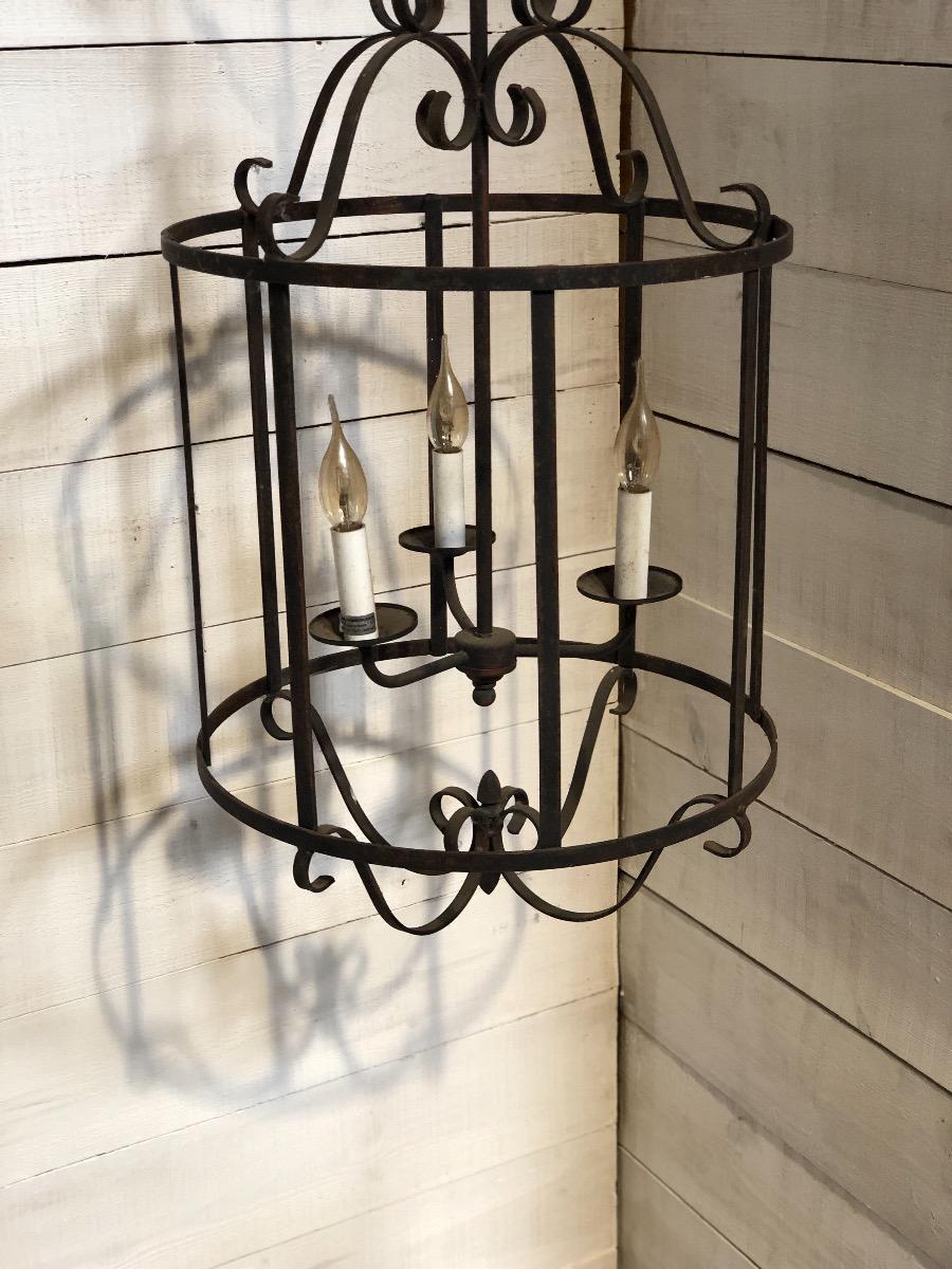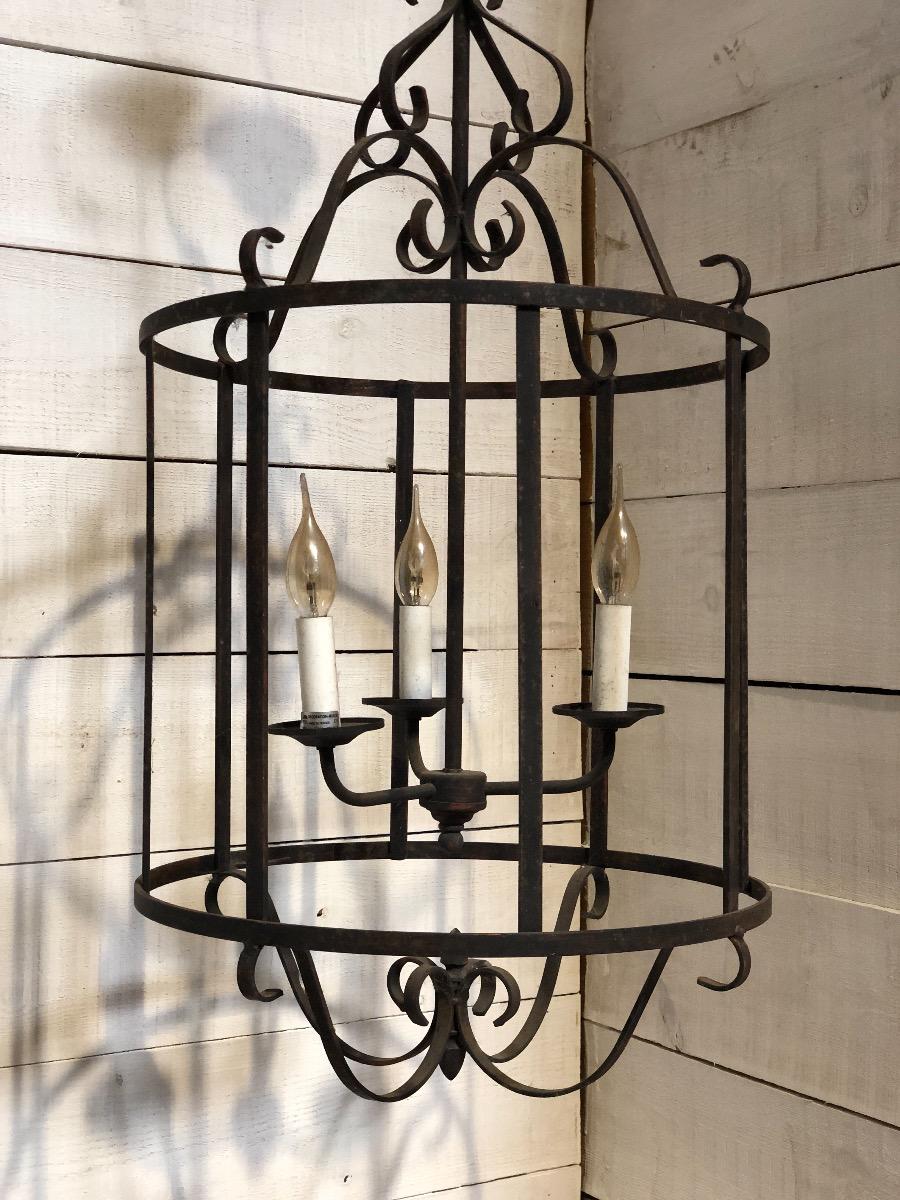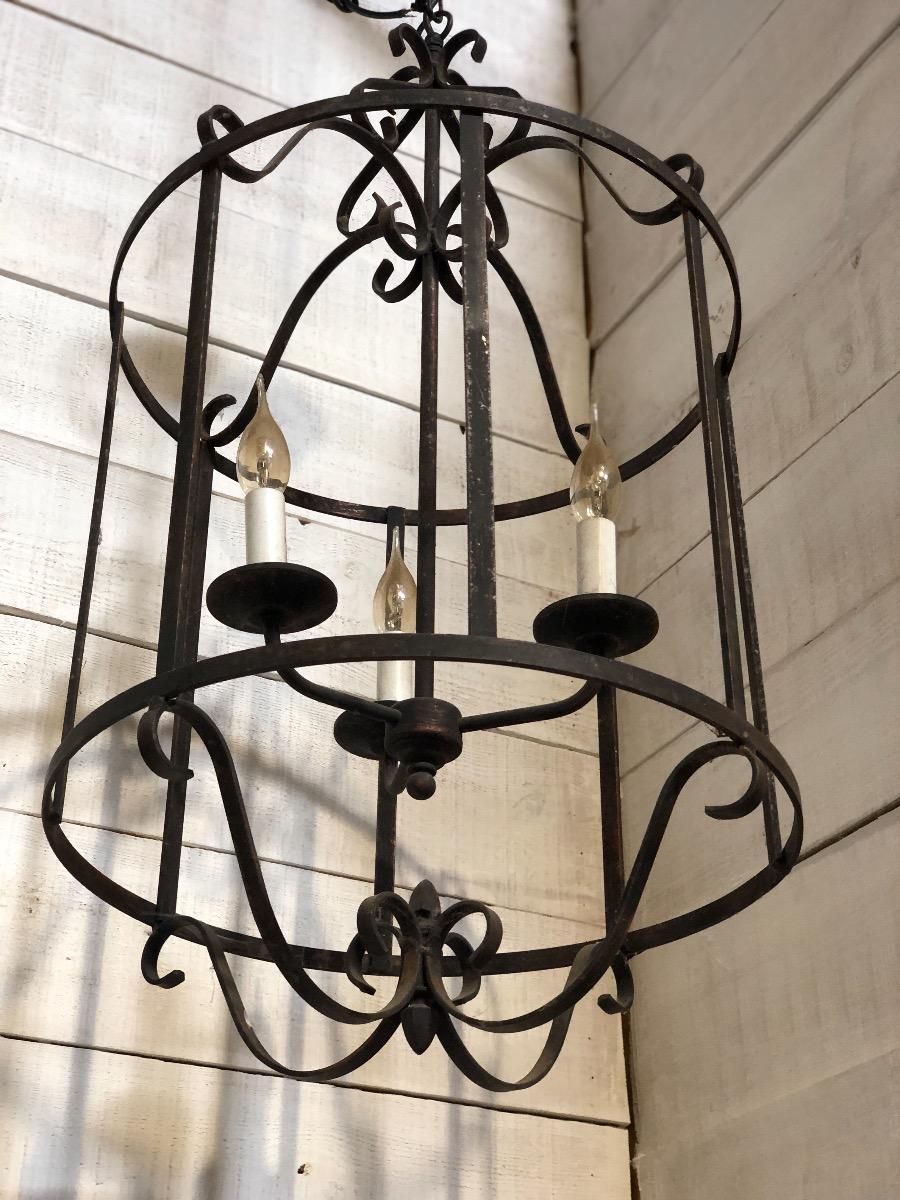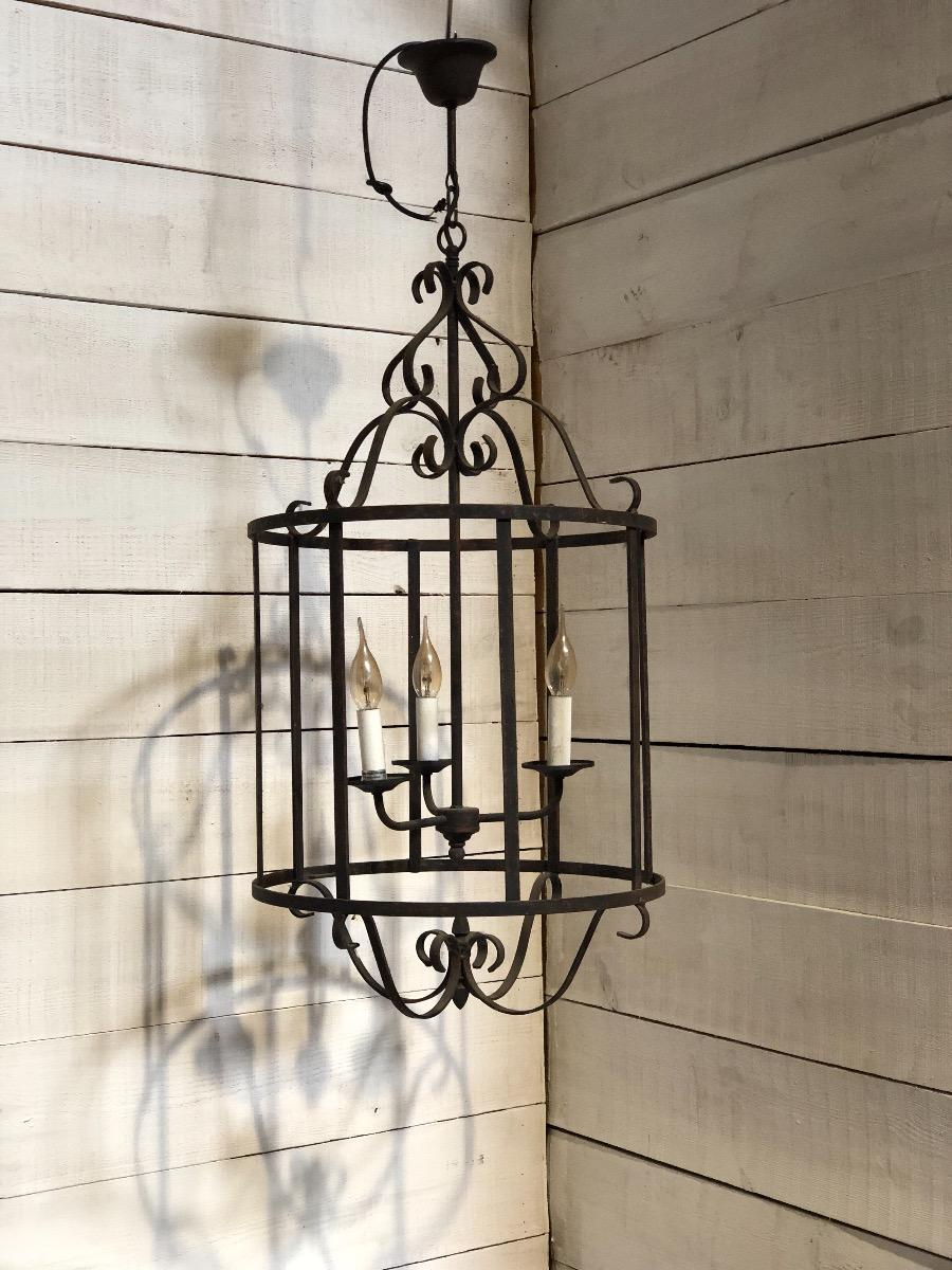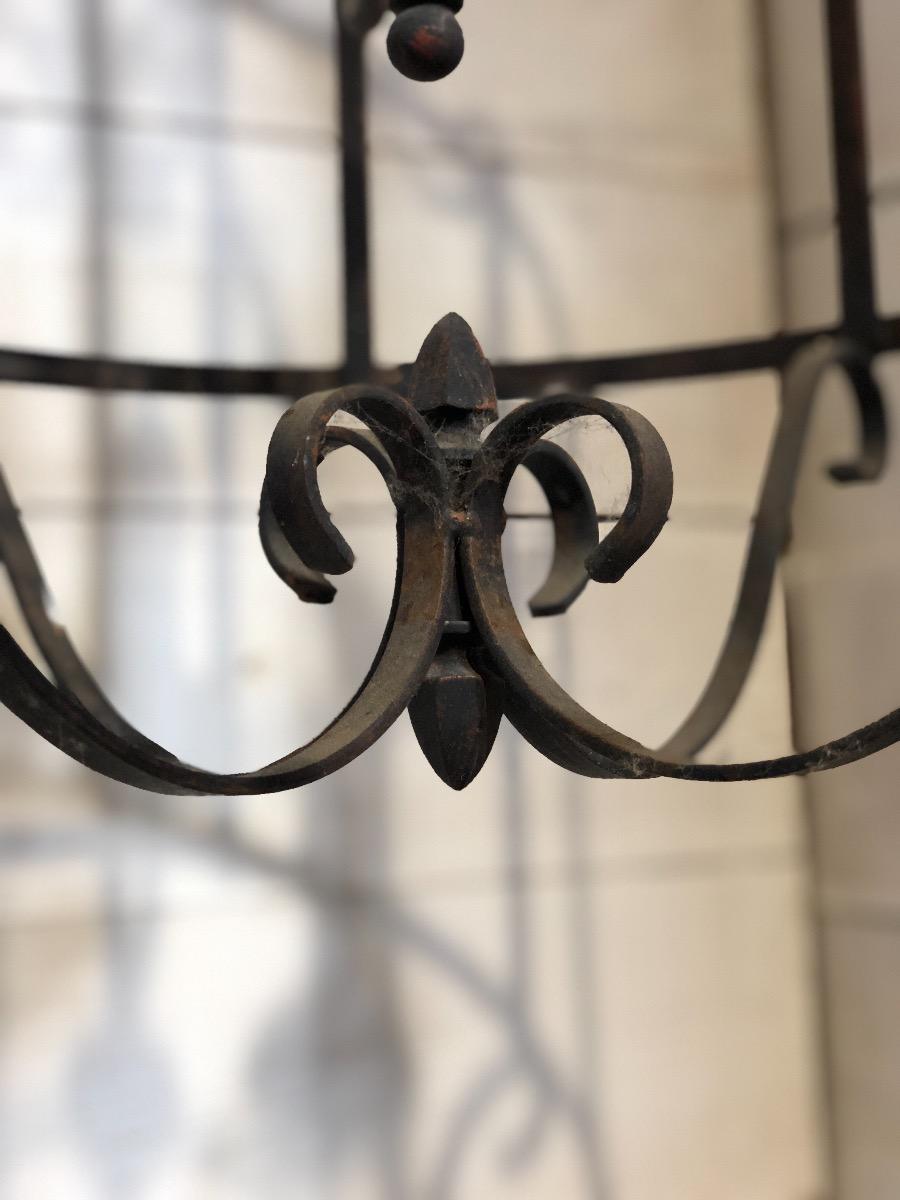 Wrought iron lantern late 20 th century Dimensions 85 cm x 45 cm